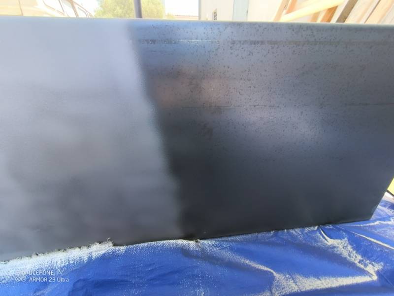 Découvrez ici le sablage de plusieurs panneaux en acier à Six-Fours avant l'application ensuite d'un accélérateur de rouille, effectuée par notre client.