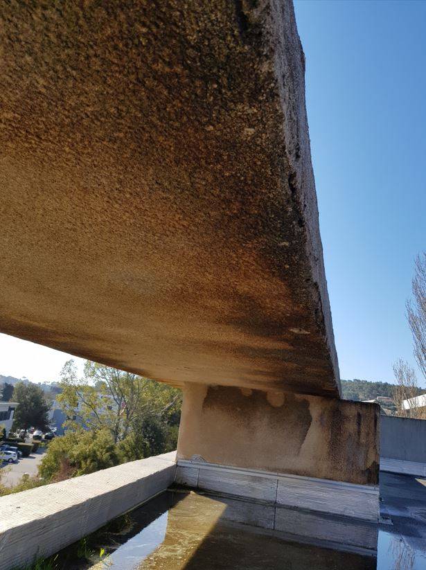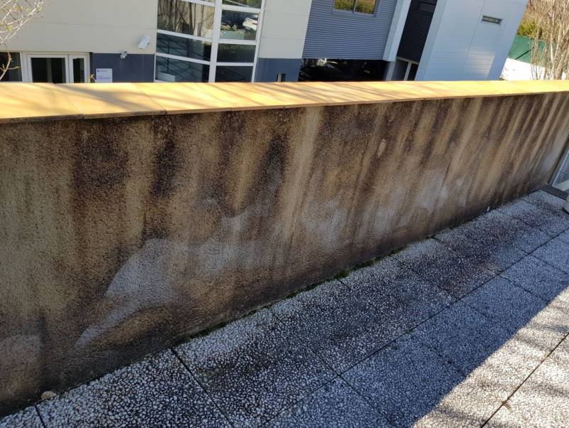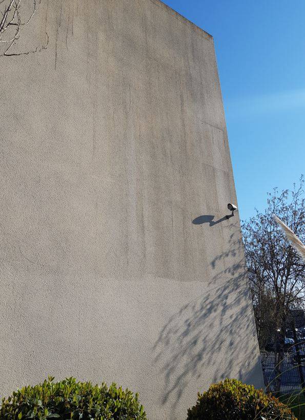 Moisissures et salissures dues intempéries et à la pollution, nuisant à l'image de votre entreprise, vous cherchez un professionnel expérimenté pour l'assainissement d'une façade et murets à Six-Fours-Les-Plages ?