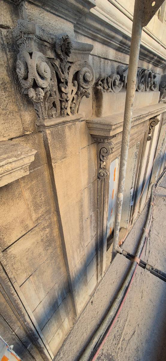 Technique d'aérogommage auquel s'ajoute une brumisation d'eau pour limiter l'émission de poussière, l'hydrogommage a permis de nettoyer la façade de l'immeuble marseillais avec soin, douceur et précision ; un procédé qui, en plus d'être efficace, présente l'avantage de préserver l'environnement, n'utilisant qu'un mélange d'air compressé, de granulats naturels et d'un peu d'eau.
