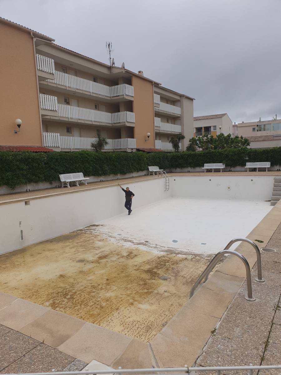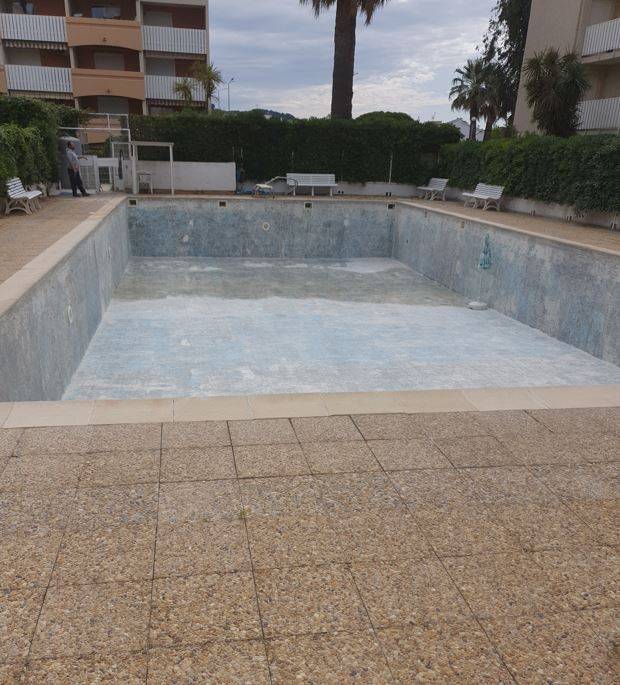Point central qui fait le bonheur des habitants d'une résidence aux Sablettes, sollicités par le syndic de copropriété, nous avez réalisé cet important chantier du décapage d'une piscine collective à Six-Fours.